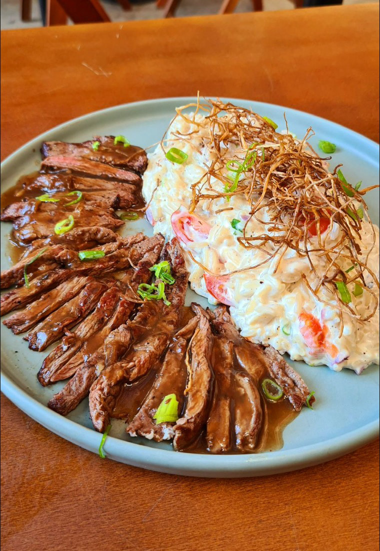 Carnes bovinas também figuram no cardápio, como o Provoleta, com carne, creme de provolone, farofa crocante de bacon, maionese da casa, alface, cebola roxa e tomate, servidos no pão de alho com ervas finas, que é tostado na manteiga.